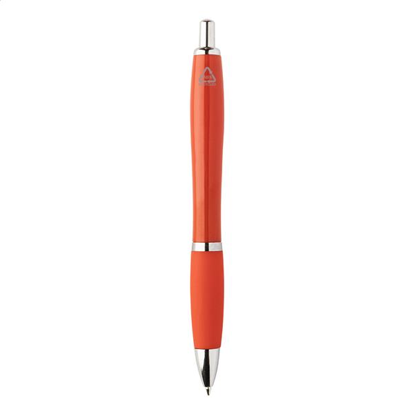 Długopis z tworzywa sztucznego ABS z recyklingu z uchwytem w pasującym kolorze i chromowanymi elementami. Z niebieskim wkładem.