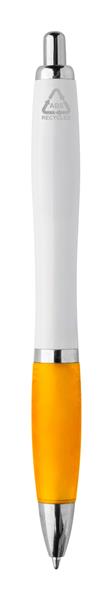 Długopis z recyklingowanego plastiku ABS z białym korpusem, kolorowym uchwytem i chromowanymi elementami. Z niebieskim wkładem. Description: Długopis z recyklingowanego plastiku ABS z białym korpusem, kolorowym uchwytem i chromowanymi elementami. Z niebieskim wkładem. Primary Color: pomarańcz Rozmiar: o13×140 mm Rodzaj długopisy: Długopis Secondary Color: biały Material 1: ABS z recyklingu Kolor wkładu: Niebieski