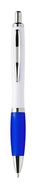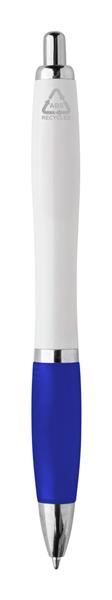 Długopis z recyklingowanego plastiku ABS z białym korpusem, kolorowym uchwytem i chromowanymi elementami. Z niebieskim wkładem.