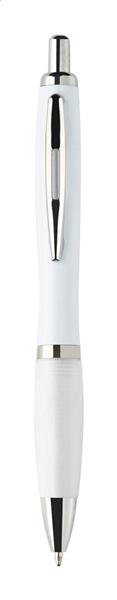 Długopis z recyklingowanego plastiku ABS z białym korpusem, kolorowym uchwytem i chromowanymi elementami. Z niebieskim wkładem.