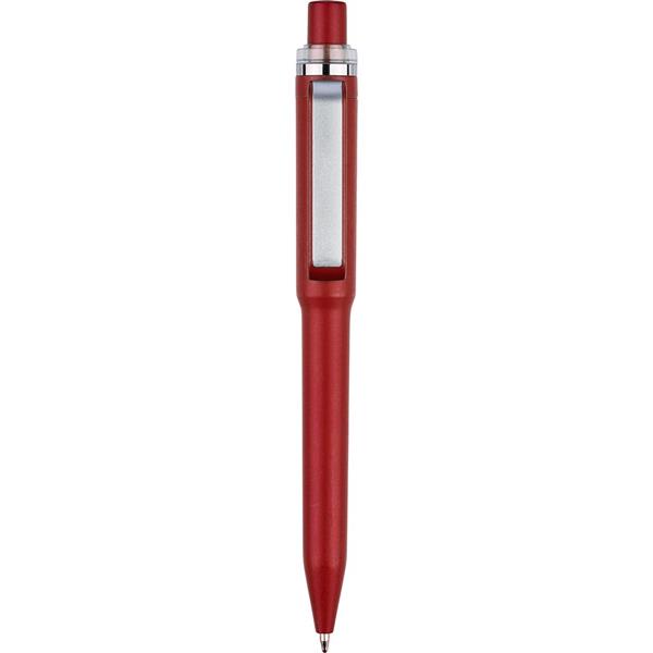 Długopis RABS, w kształcie kubka podróżnego, z metalicznym wykończeniem, wkład w niebieskim kolorze o długości pisania 800 metrów, mechanizm przyciskowy, ikona ABS z recyklingu, plastikowy przycisk, klips oraz chromowany plastikowy pierścień na górze