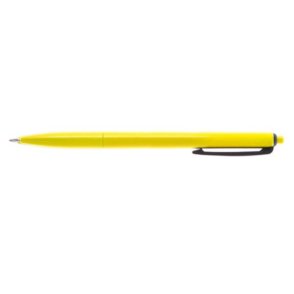 Długopis z kolorowym trzonem i czarnym klipem, wkład w niebieskim kolorze, produkt wykonany z plastiku