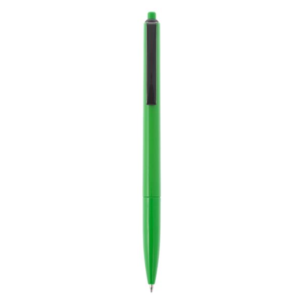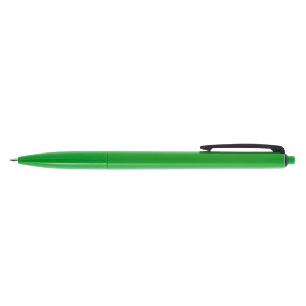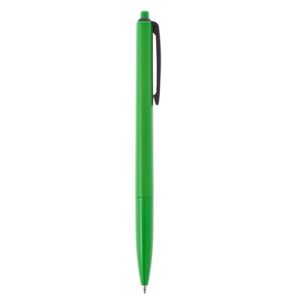 Długopis z kolorowym trzonem i czarnym klipem, wkład w niebieskim kolorze, produkt wykonany z plastiku