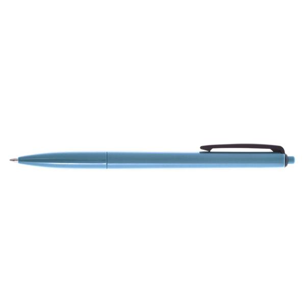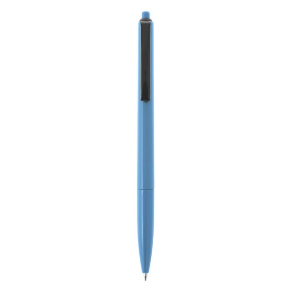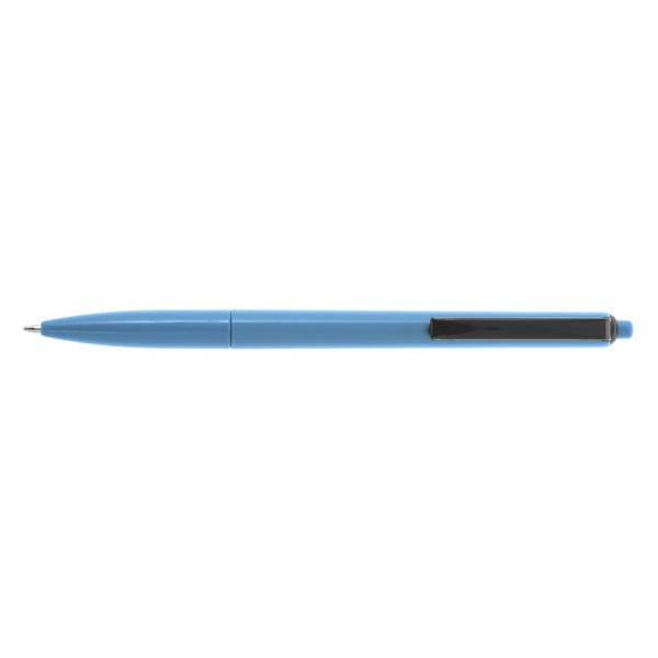 Długopis z kolorowym trzonem i czarnym klipem, wkład w niebieskim kolorze, produkt wykonany z plastiku