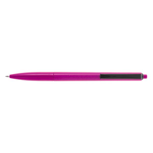 Długopis z kolorowym trzonem i czarnym klipem, wkład w niebieskim kolorze, produkt wykonany z plastiku
