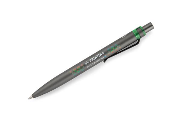 Długopis RAL wykonany jest z recyklingowanego aluminium w eleganckim, grafitowym kolorze z chromowanym wykończeniem. Aluminiowy klips zakończony kolorowym akcentem nadaje mu nowoczesny i rozpoznawalny wygląd. Mechanizm wysuwu jest automatyczny, co zapewnia wygodę i szybkie użycie w każdej sytuacji. Smukła forma oraz przyjemny w dotyku korpus gwarantują komfort pisania. Wkład typu G2 o grubości linii 1,0 […]