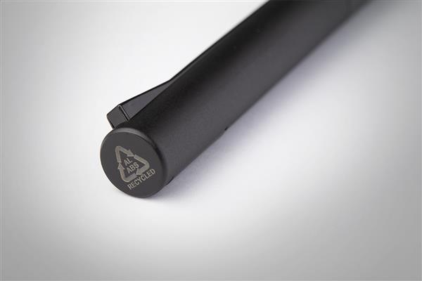 Długopis z aluminium pochodzącego z recyklingu, w matowym, metalicznym kolorze, z górnym korpusem z tworzywa ABS pochodzącego z recyklingu i ze specjalnym mechanizmem klipa. Z niebieskim wkładem.
