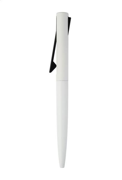 Długopis z aluminium pochodzącego z recyklingu, w matowym, metalicznym kolorze, z górnym korpusem z tworzywa ABS pochodzącego z recyklingu i ze specjalnym mechanizmem klipa. Z niebieskim wkładem.