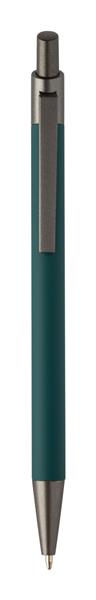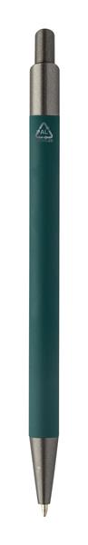 Długopis aluminiowy z recyklingu z gumowanym korpusem i elementami w kolorze gunmetal. Z niebieskim wkładem. Description: Długopis aluminiowy z recyklingu z gumowanym korpusem i elementami w kolorze gunmetal. Z niebieskim wkładem. Primary Color: zielony Material 2: Guma Rodzaj długopisy: Długopis Rozmiar: o9×140 mm Material 1: Aluminium z recyklingu Rodzaj mechanizmu: wciskany Kolor wkładu: Niebieski