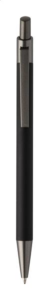 Długopis aluminiowy z recyklingu z gumowanym korpusem i elementami w kolorze gunmetal. Z niebieskim wkładem. Description: Długopis aluminiowy z recyklingu z gumowanym korpusem i elementami w kolorze gunmetal. Z niebieskim wkładem. Primary Color: czarny Material 2: Guma Rodzaj długopisy: Długopis Rozmiar: o9×140 mm Material 1: Aluminium z recyklingu Rodzaj mechanizmu: wciskany Kolor wkładu: Niebieski