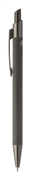 Długopis aluminiowy z recyklingu z gumowanym korpusem i elementami w kolorze gunmetal. Z niebieskim wkładem. Description: Długopis aluminiowy z recyklingu z gumowanym korpusem i elementami w kolorze gunmetal. Z niebieskim wkładem. Primary Color: ciemno szary Material 2: Guma Rodzaj długopisy: Długopis Rozmiar: o9×140 mm Material 1: Aluminium z recyklingu Rodzaj mechanizmu: wciskany Kolor wkładu: Niebieski