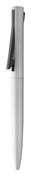Długopis w metalicznym, matowym kolorze z aluminiowym korpusem i specjalnym mechanizmem klipu. Zawiera niebieski wkład.