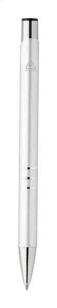 Długopis aluminiowy z recyklingu, z metalicznym wykończeniem i niebieskim wkładem. Description: Długopis aluminiowy z recyklingu, z metalicznym wykończeniem i niebieskim wkładem. Primary Color: srebrny Rodzaj długopisy: Długopis Rozmiar: o11×138 mm Material 1: Aluminium z recyklingu Kolor wkładu: Niebieski