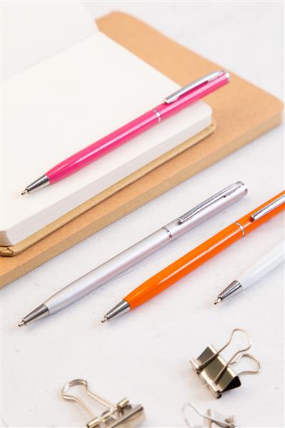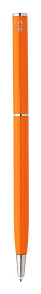 Długopis z przekręcany z aluminium z recyklingu z chromowanymi elementami. Z niebieskim wkładem. Description: Długopis z przekręcany z aluminium z recyklingu z chromowanymi elementami. Z niebieskim wkładem. Primary Color: pomarańcz Rodzaj długopisy: Długopis Rozmiar: o8×129 mm Material 1: Aluminium z recyklingu Kolor wkładu: Niebieski