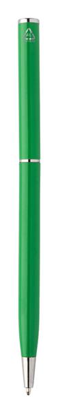 Długopis z przekręcany z aluminium z recyklingu z chromowanymi elementami. Z niebieskim wkładem. Description: Długopis z przekręcany z aluminium z recyklingu z chromowanymi elementami. Z niebieskim wkładem. Primary Color: zielony Rodzaj długopisy: Długopis Rozmiar: o8×129 mm Material 1: Aluminium z recyklingu Kolor wkładu: Niebieski