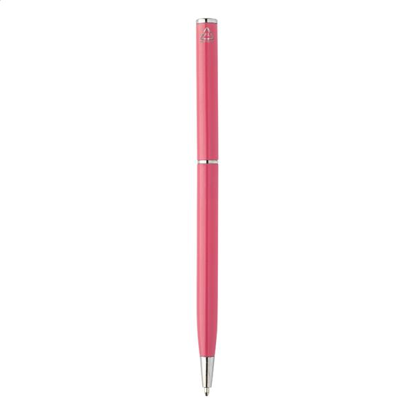 Długopis z przekręcany z aluminium z recyklingu z chromowanymi elementami. Z niebieskim wkładem.