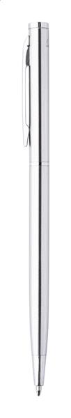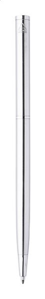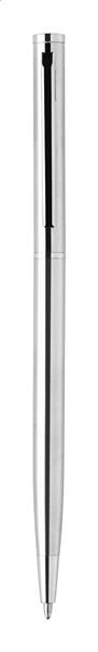 Długopis ze stali nierdzewnej z recyklingu z chromowanymi elementami. Z niebieskim wkładem.
