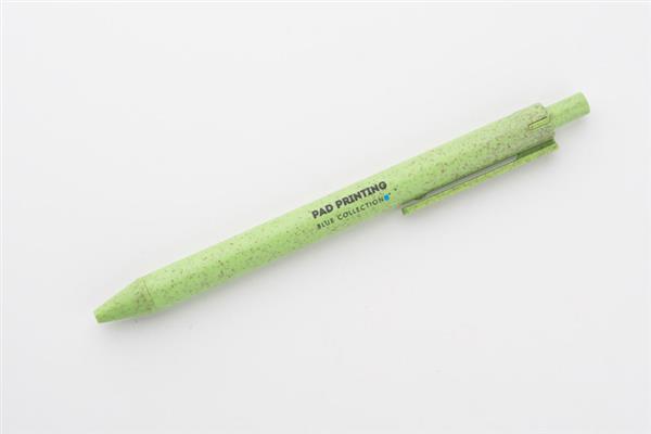 Długopis REVI został wykonany z myślą o wszystkich, którym bliska jest idea redukowania odpadów z tworzywa sztucznego. Tradycyjne tworzywo sztuczne zostało zastąpione specjalnym materiałem wykonanym w 40% z naturalnej słomy. Klasyczny, prosty kształt czyni go uniwersalnym gadżetem. Długopis automatyczny. Wkład typu X20 w kolorze niebieskim.