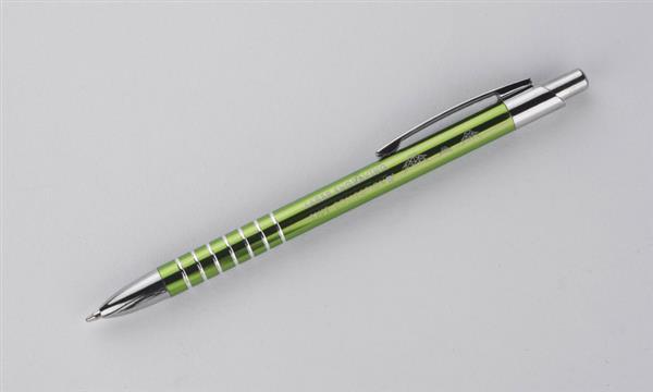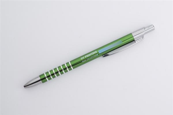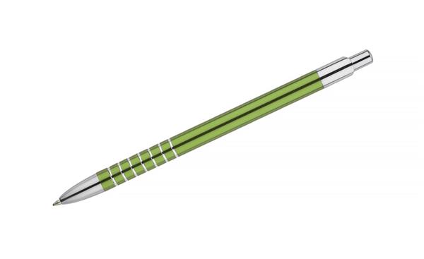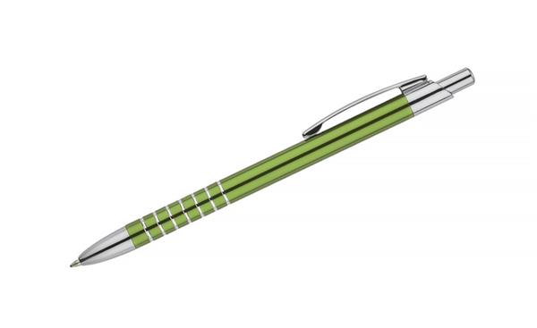 Prosty długopis wykonany z aluminium ozdobiony szerokimi ringami. Logo wygrawerujemy.