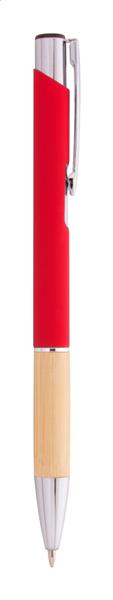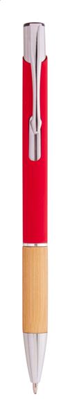 Aluminiowy długopis z bambusowym uchwytem, gumowanym wykończeniem i niebieskim wkładem. Ze specjalną powłoką pod grawer lustrzany.