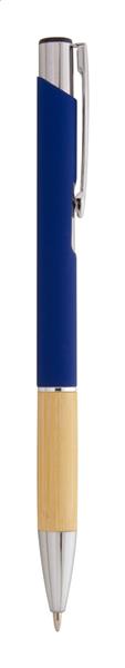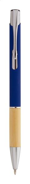 Aluminiowy długopis z bambusowym uchwytem, gumowanym wykończeniem i niebieskim wkładem. Ze specjalną powłoką pod grawer lustrzany.