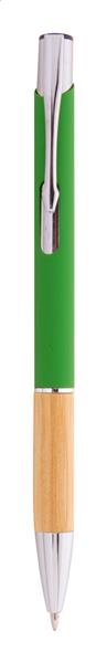 Aluminiowy długopis z bambusowym uchwytem, gumowanym wykończeniem i niebieskim wkładem. Ze specjalną powłoką pod grawer lustrzany.