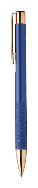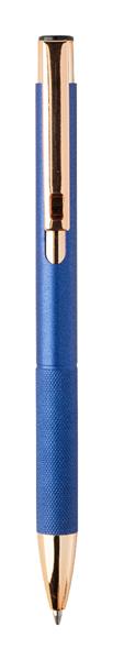 Długopis z recyklingowanego aluminium z matowym wykończeniem, teksturowanym uchwytem i detalami w kolorze różowego złota. Ze specjalną powłoką do lustrzanego grawerowania laserowego w kolorze różowego złota. Z niebieskim wkładem.