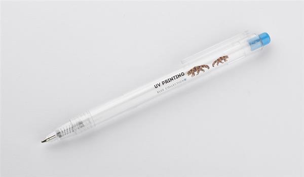 Długopis KLIIR powstał w całości z tworzywa PET po recyklingu (rPET). Ten prosty gadżet pokazuje nam, jak świadomie możemy gospodarować odpadami z tworzywa sztucznego i tworzyć z nich nowe przydatne przedmioty. Przezroczysty bezbarwny korpus długopisu ładnie połączony jest z przyciskiem w żywych kolorach. Długopis automatyczny, wkład typy G2 w kolorze niebieskim.