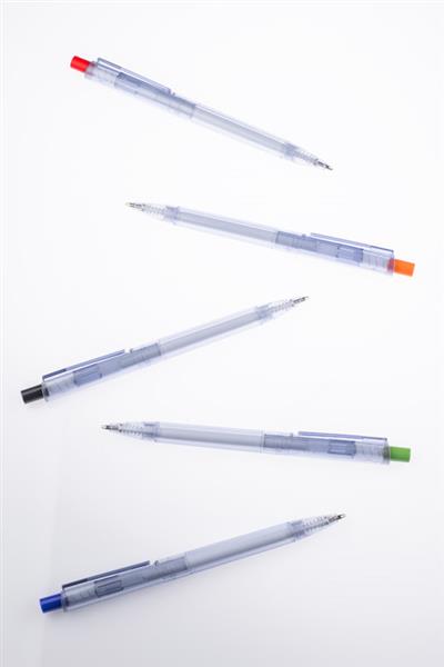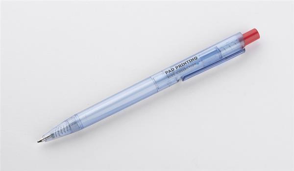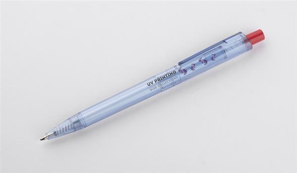 Długopis RECYKLO wytworzony w całości z tworzywa rPET (PET po recyklingu) jest odpowiedzią na poszukiwanie sposobów na zagospodarowanie odpadów z tworzywa sztucznego. Przezroczysty korpus w kolorze niebieskim przypomina wyglądem butelki do wody, z których został wyprodukowany. Długopis automatyczny, wkład typu G2 w kolorze niebieskim.