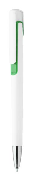 Plastikowy długopis z kolorowymi wykończeniami i chromowaną końcówką. Z niebieskim wkładem. Description: Plastikowy długopis z kolorowymi wykończeniami i chromowaną końcówką. Z niebieskim wkładem. Primary Color: zielony Material 1: Plastik (ABS) Rodzaj długopisy: Długopis Secondary Color: biały Rozmiar: o10×138 mm Rodzaj mechanizmu: wciskany Rodzaj wkładu: Normalny wkład Rozmiar kulki we wkładzie: 1 mm Kolor wkładu: Niebieski