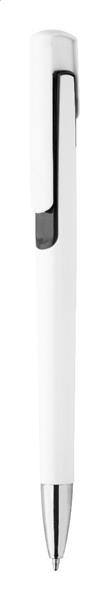 Plastikowy długopis z kolorowymi wykończeniami i chromowaną końcówką. Z niebieskim wkładem. Description: Plastikowy długopis z kolorowymi wykończeniami i chromowaną końcówką. Z niebieskim wkładem. Primary Color: czarny Material 1: Plastik (ABS) Rodzaj długopisy: Długopis Secondary Color: biały Rozmiar: o10×138 mm Rodzaj mechanizmu: wciskany Rodzaj wkładu: Normalny wkład Rozmiar kulki we wkładzie: 1 mm Kolor wkładu: Niebieski