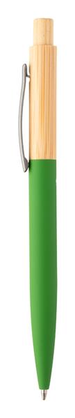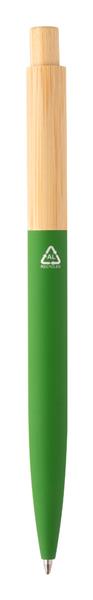 Długopis z bambusa i aluminium pochodzącego z recyklingu, z gumowanym wykończeniem i metalowym klipem. Z niebieskim wkładem.
