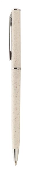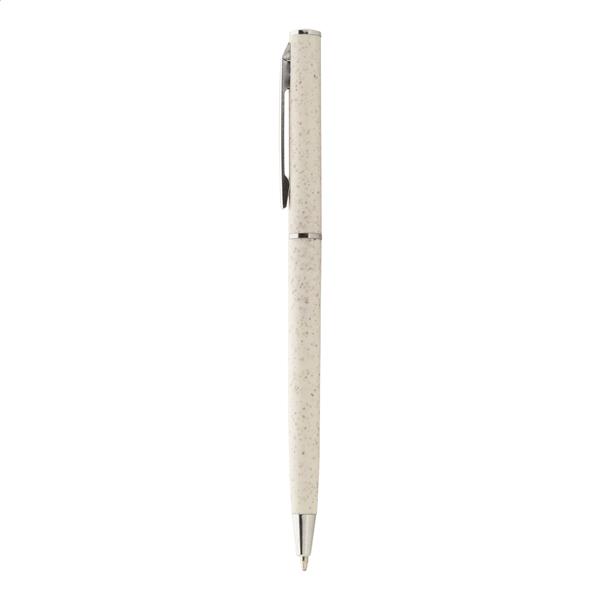 Ekologiczny, plastikowy długopis z przekręcanym mechanizmem ze słomy pszenicznej z chromowanymi elementami. Niebieski wkład.