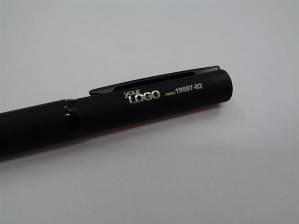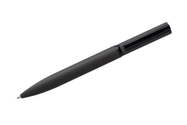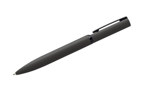 Solidność i szyk – to najlepsza definicja długopisu SOLID. Ciekawy, lekko asymetryczny kształt oraz metalowa konstrukcja. Długopis świetnie leży w dłoni, a obrotowy mechanizm jest niezwykle wygodny w użyciu. Powierzchnia długopisu pokryta specjalną gumowaną farbą, która nadaje matowe wykończenie. Klip i środkowy ring w kolorze czarnym.