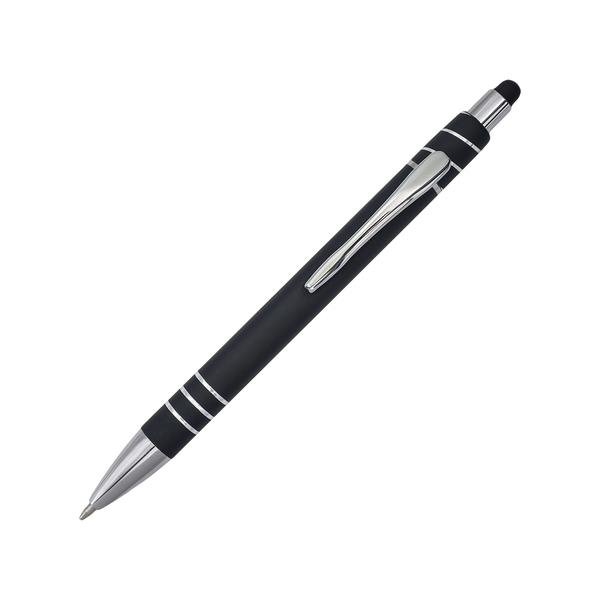 Długopis z aluminium z końcówką do ekranów dotykowych i obrotowym elementem. Niebieski wkład.