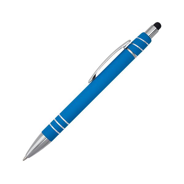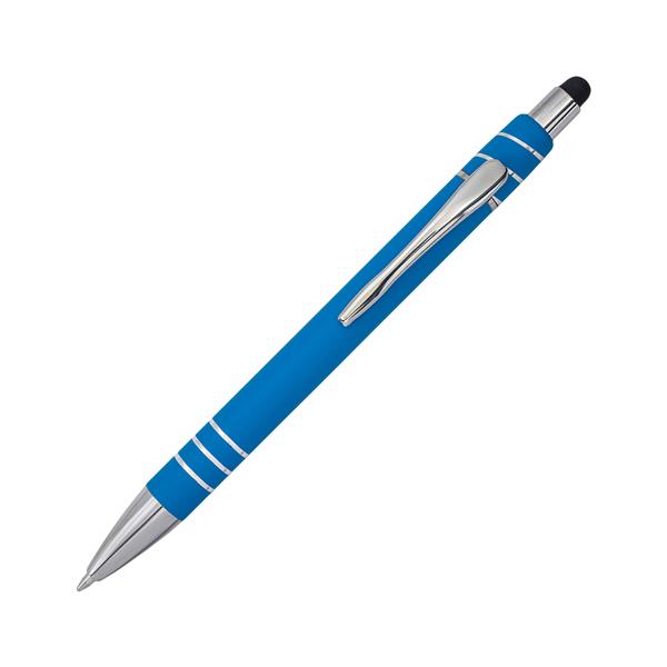Długopis z aluminium z końcówką do ekranów dotykowych i obrotowym elementem. Niebieski wkład.