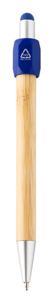 Bambusowy długopis z końcówkądo ekranów dotykowych z fidget spinnerem z recyklingowanego plastiku ABS. Z niebieskim wkładem.