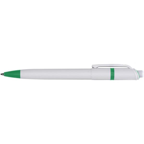 Długopis Stilolinea Ducal, biały trzon, kolorowe akcenty, wkład w niebieskim kolorze, zawiera tusz German Dokumental Ink, produkt wykonany z ABS, plastiku, niklu i metalu