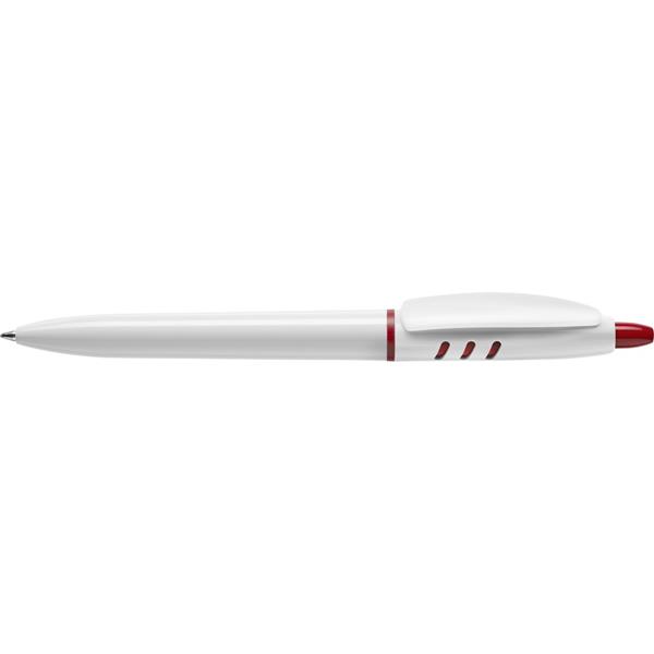 Długopis Stilolinea S30, biały trzon, kolorowe akcenty, wkład w niebieskim kolorze, zawiera tusz German Dokumental Ink, produkt wykonany z ABS, plastiku, niklu i metalu