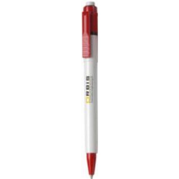 Długopis Stilolinea Baron z wkładem jumbo, biały trzon, kolorowy klips, wkład w niebieskim kolorze, zawiera tusz German Dokumental Ink, produkt wykonany z ABS, plastiku i metalu