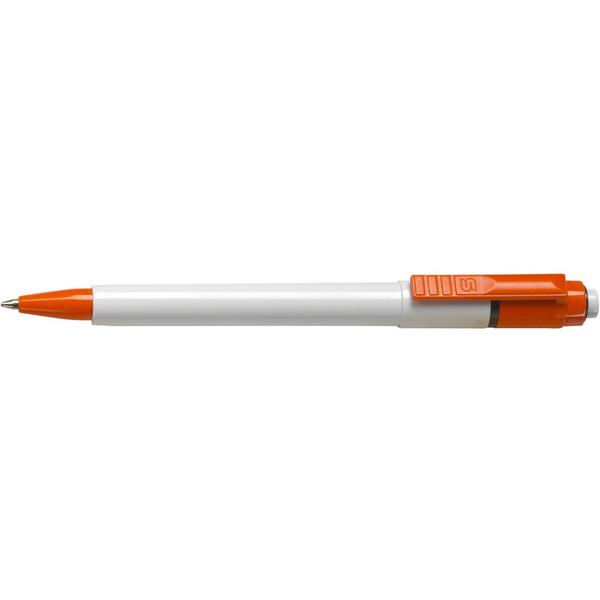 Długopis Stilolinea Baron z wkładem jumbo, biały trzon, kolorowy klips, wkład w niebieskim kolorze, zawiera tusz German Dokumental Ink, produkt wykonany z ABS, plastiku i metalu