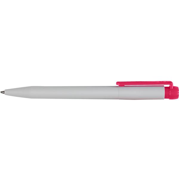 Długopis Stilolinea, biały trzon, kolorowy, szeroki klip, wkład w niebieskim kolorze, zawiera tusz German Dokumental Ink, produkt wykonany z ABS, plastiku, niklu i metalu
