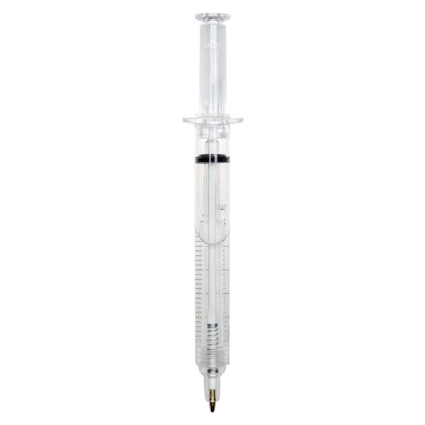 Długopis „strzykawka” z kolorowym płynem, posiada nadrukowaną skalę ml, wkład w czarnym kolorze, produkt wykonany z AS