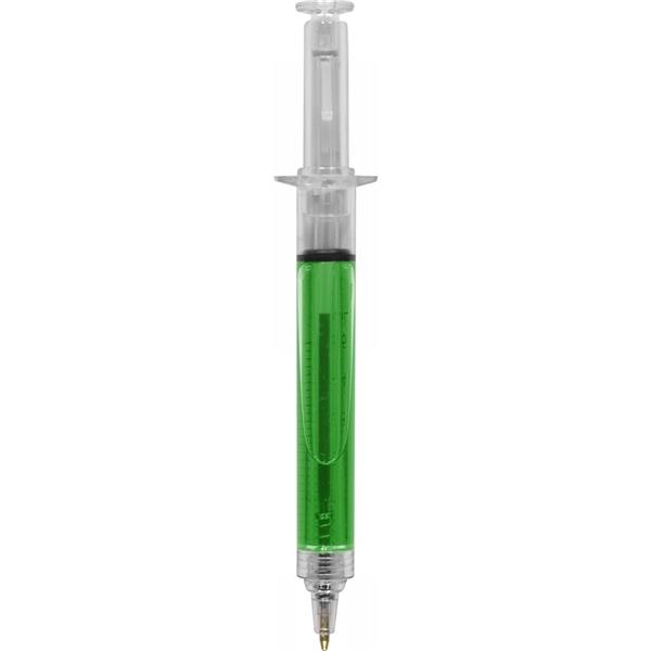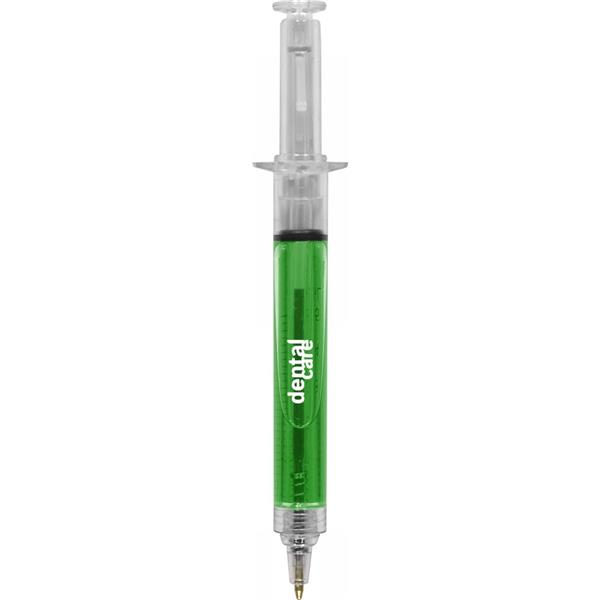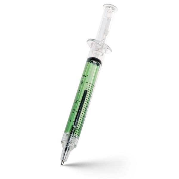 Długopis „strzykawka” z kolorowym płynem, posiada nadrukowaną skalę ml, wkład w czarnym kolorze, produkt wykonany z AS