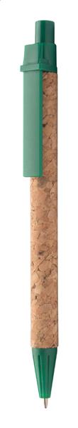 Długopis z papieru z recyklingu pokryty korkiem z plastikowymi elementami. Z niebieskim wkładem.