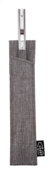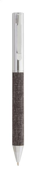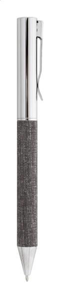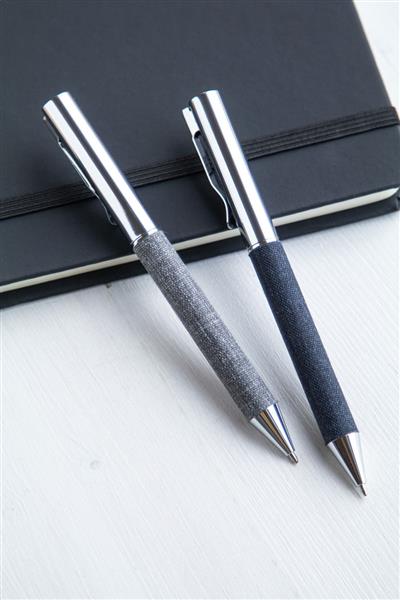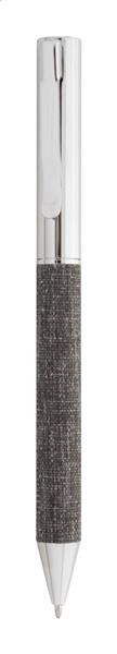 Metalowy przekręcany długopis z korpusem pokrytym poliestrem RPET. W dopasowanym etui z poliestru RPET. Z niebieskim wkładem.