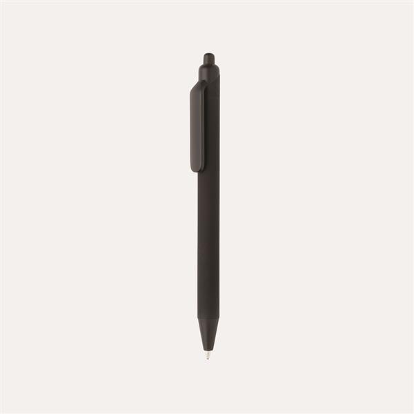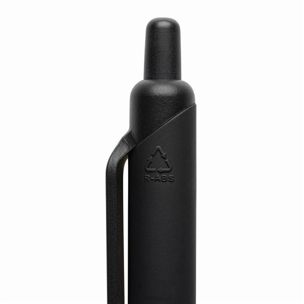 Długopis Tide RABS, wykonany w 91% z recyklingowanego ABS z certyfikatem GRS, gumowany uchwyt zapewniający wygodne pisanie, matowe wykończenie przycisku, klipsa i końcówki, niebieski wkład piszący do 1200 m, mechanizm przyciskowy.