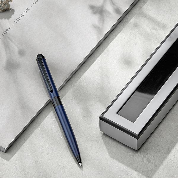 Metalowy długopis z końcówką przystosowaną do ekranów dotykowych w upominkowym pudełku. Wkład w kolorze niebieskim.