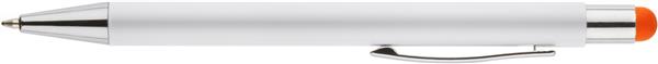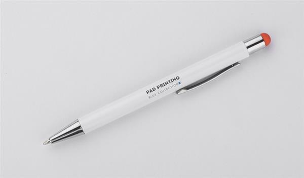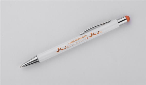 BIANCO to długopis, który zaskakuje efektem znakowania. Kolor grawera jest zbliżony do koloru końcówki touch do obsługi ekranów dotykowych. Korpus wykonany z aluminium pokrytego białą farbą. Długopis automatyczny. Wkład typu G2 w kolorze niebieskim.