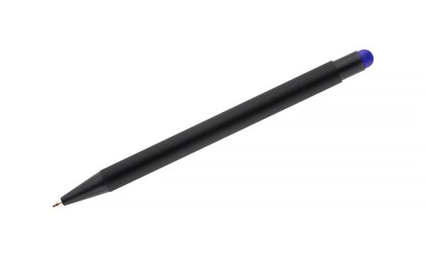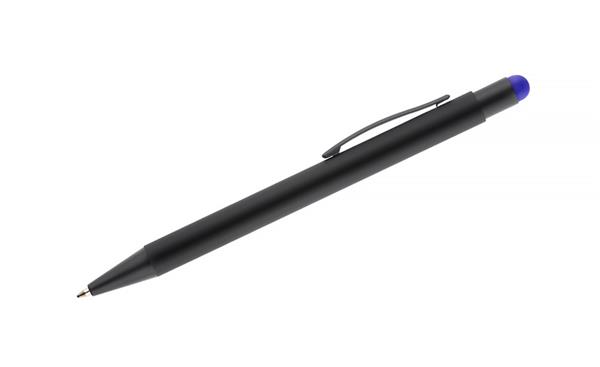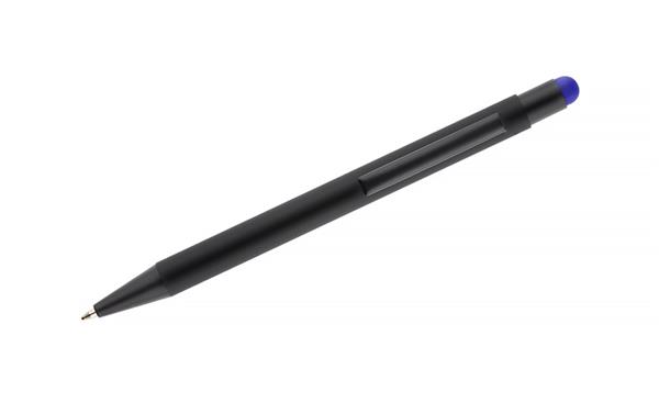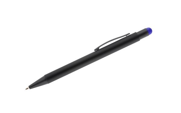 NIRO to długopis z wyjątkowym efektem znakowania. Kolor grawera jest zbliżony do koloru końcówki touch do obsługi ekranów dotykowych. Korpus wykonany z aluminium pokrytego gumowaną powłoką typu soft touch. Wykończenia w kolorze czarnym. Długopis automatyczny. Wkład typu G2 w kolorze niebieskim.